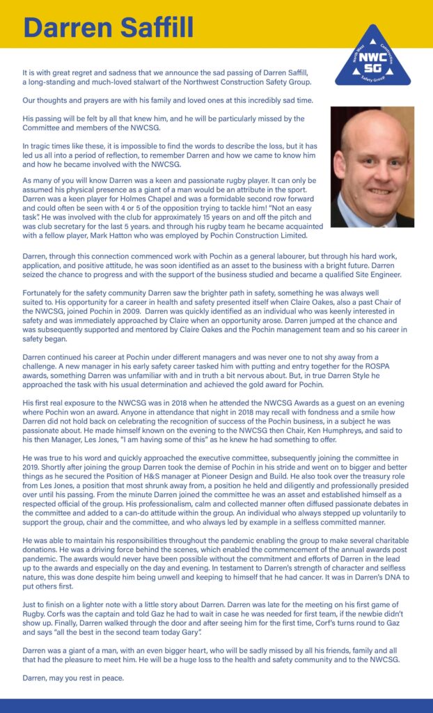 The Group’s objective is to promote reduction in the risk of accident and personal injury in the North West of England and provides a fantastic opportunity for construction industry professionals of all designations to network with like-minded individuals with the common goal of improving construction safety performance.